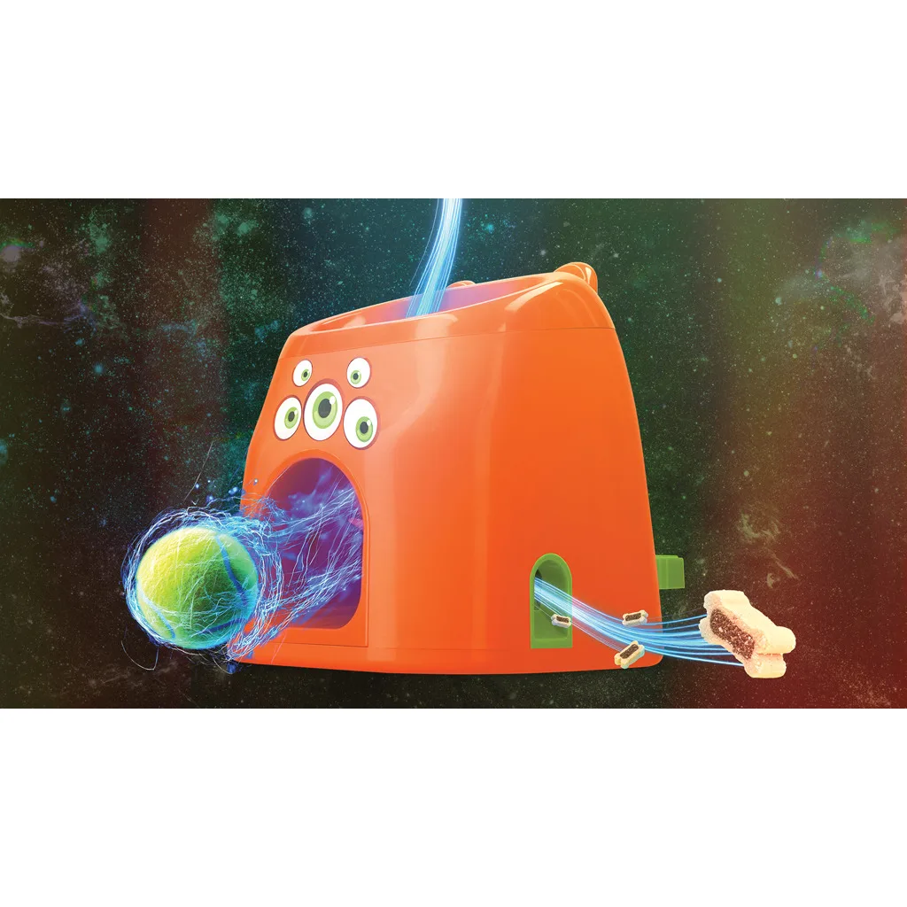 Laat de bal in de opening bovenop vallen of druk op het pedaal, en tegelijkertijd opent er een luikje waardoor een traktatie valt. De D1spencer heeft een apart reservoir voor brokjes of snoepjes en stimuleert zowel beweging als denkvermogen. Ideaal voor actief spel, hersenwerk en zelfstandig speelplezier.