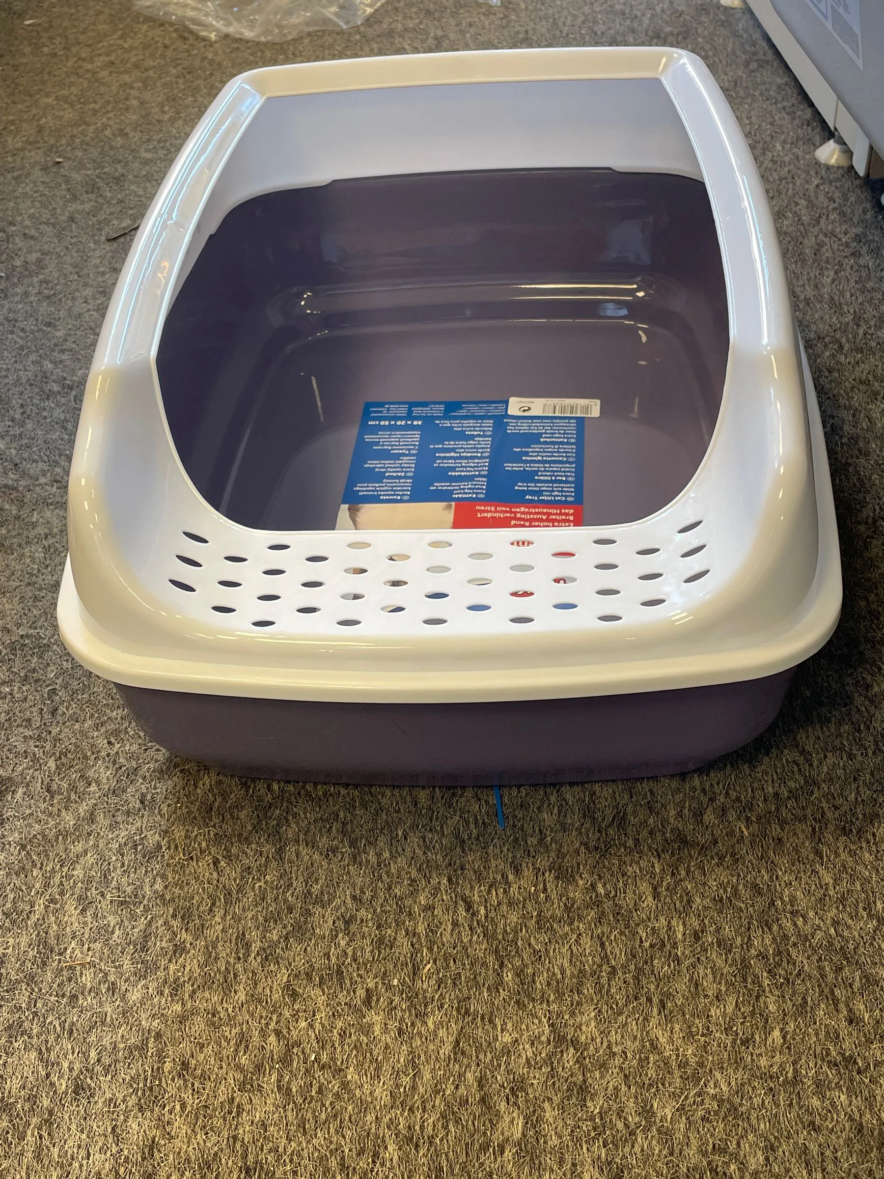 Kattenbak Delio, met rand, bedrukt, 38 × 20 × 50 cm, paars/wit