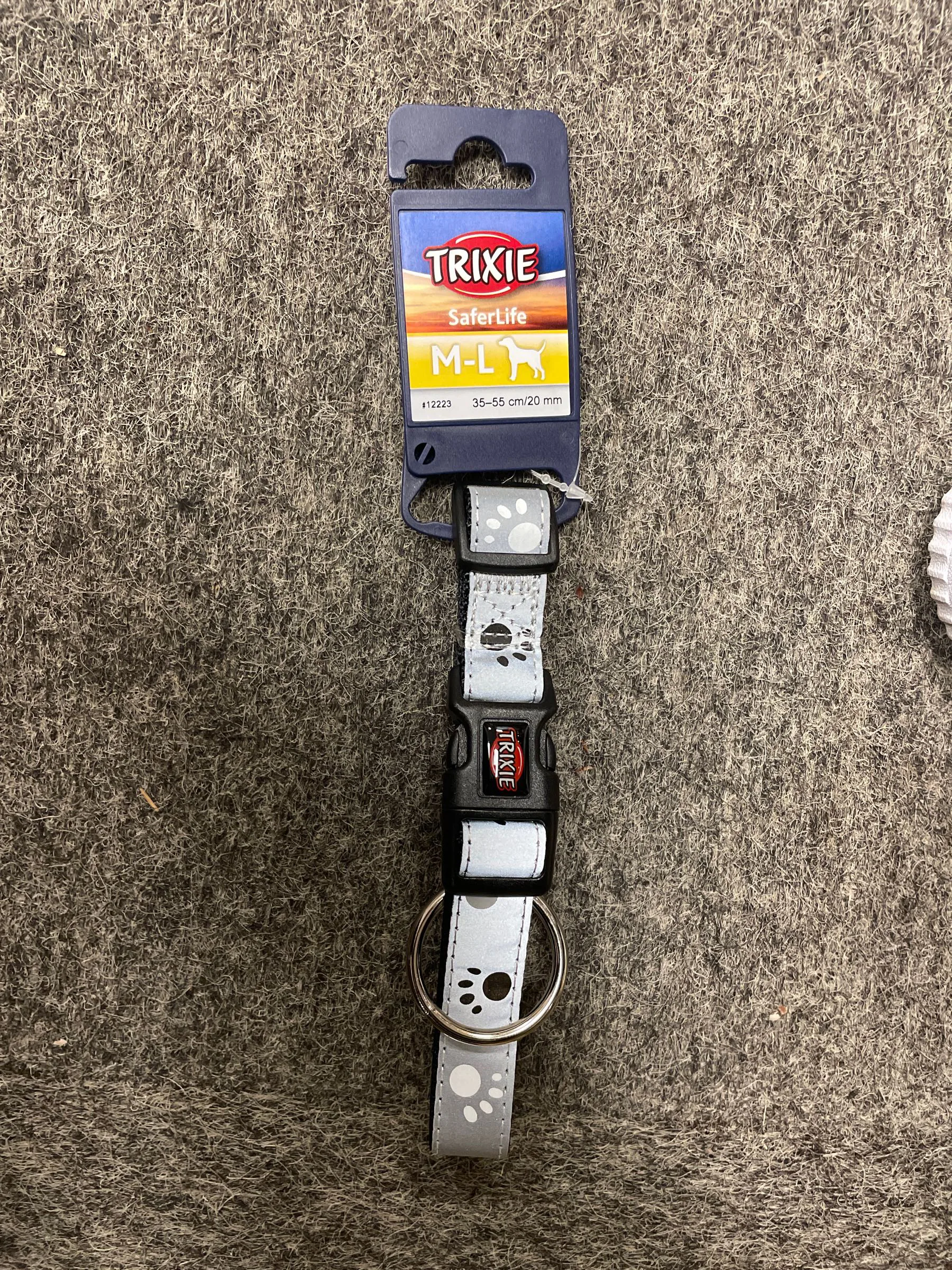 Silver Reflect halsband, M–L: 35–55 cm/20 mm, zwart/zilvergrijs